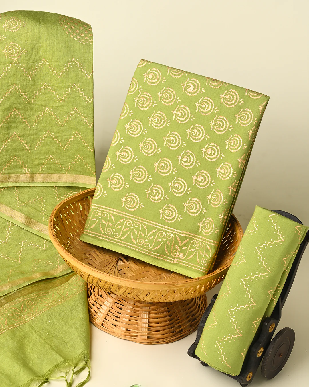 Hand Block Printed Cotton Suit With Chnaderi Dupatta BSCD01