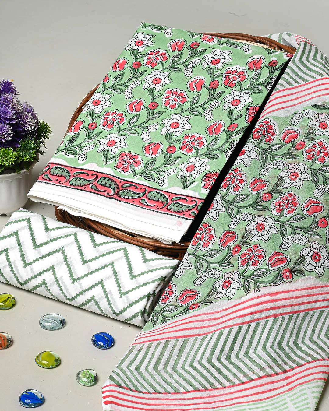 New Green Premium Hand Block Printed Cotton Suit With Cotton Duptta (BSCOTMU79)