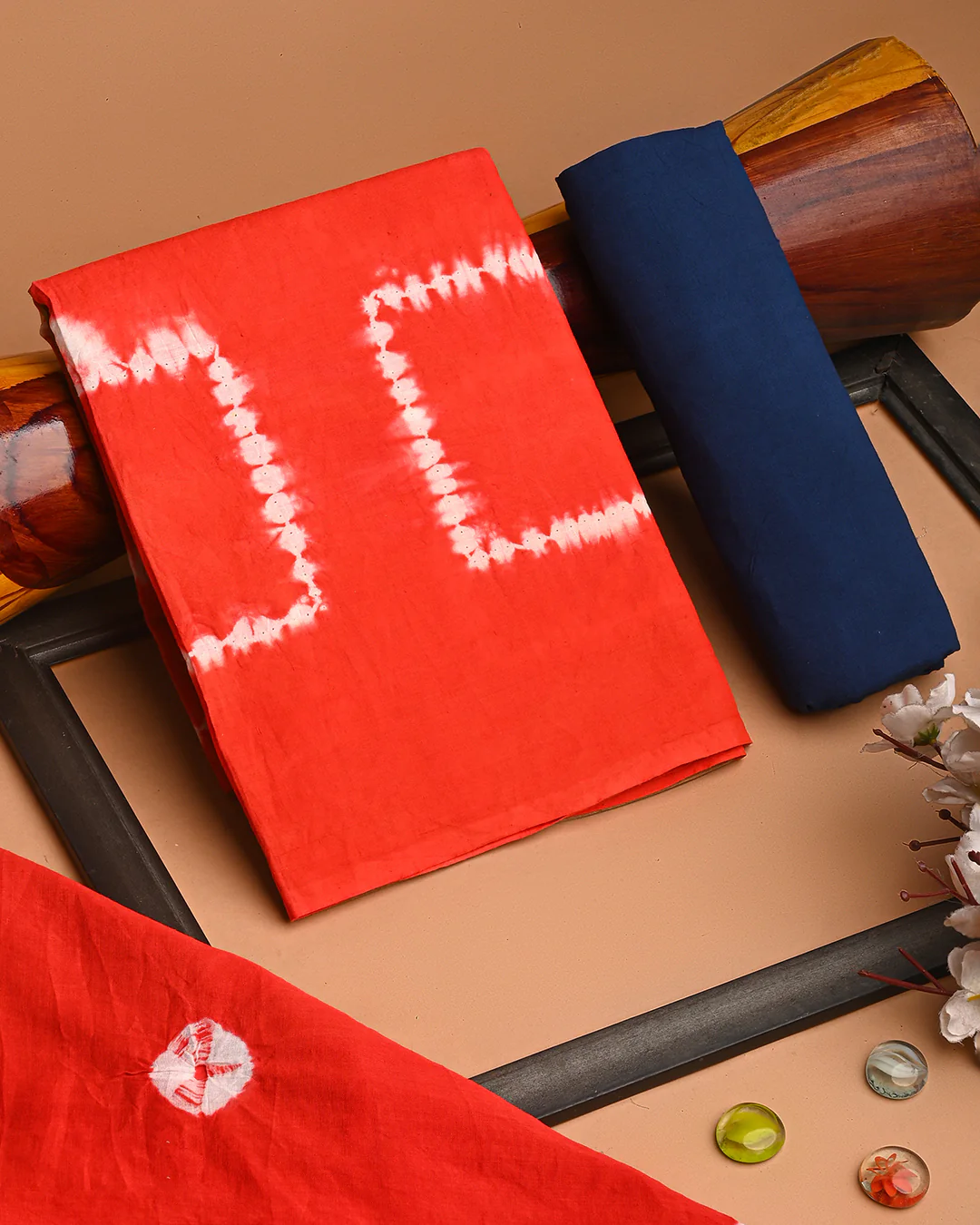Premium Red and White Tie and Dye Printed Cotton Suit With Cotton Dupatta (BSCOTMU83)
