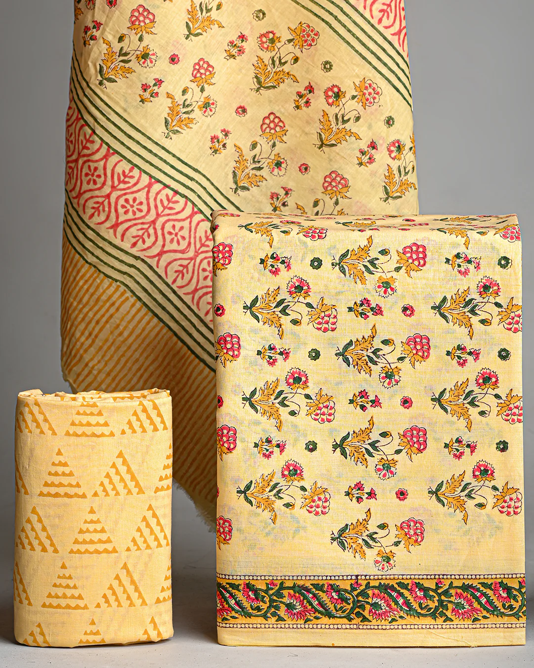 Premium Yelllow Hand Block Printed Cotton Suit With Cotton Dupatta (BSCOTMU06)