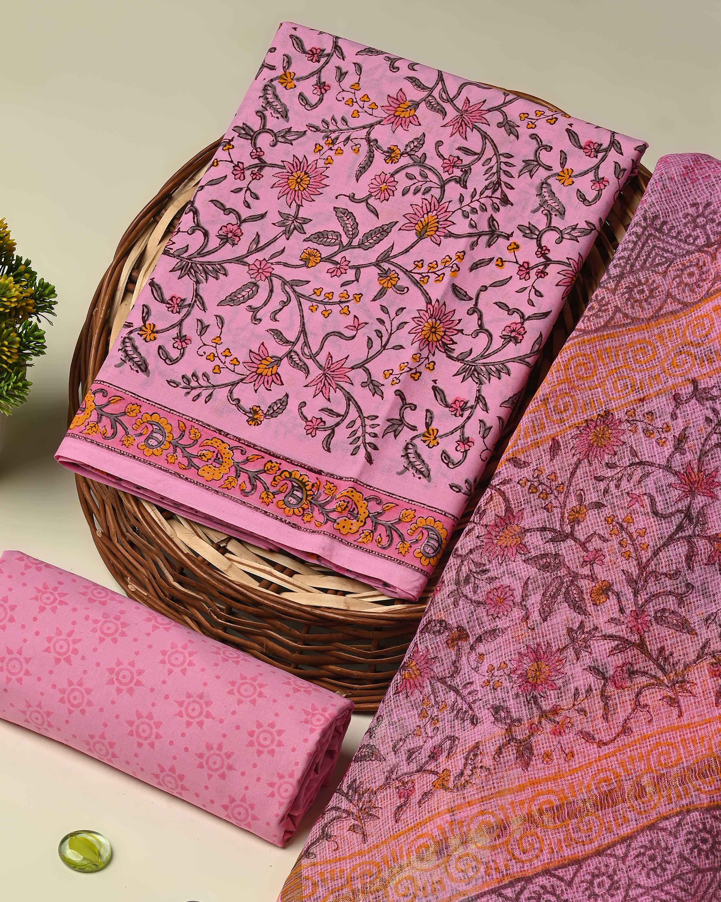 Premium Jaal print Hand Block Printed Cotton Suit With Kota Doria Dupatta BSCOTKO37